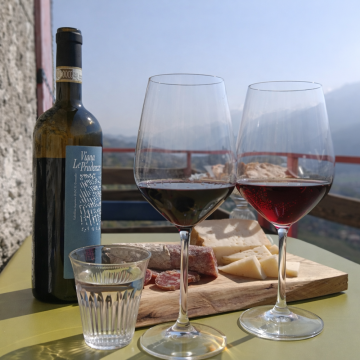 The experience begins with an evocative walk through the vineyards of Valtellina Superiore DOCG Grumello, where the view opens onto the characteristic terraced landscape of Valtellina: a unique scenery, shaped over the centuries by dry-stone walls (UNESCO heritage), vineyard terraces, and spontaneous vegetation, suspended between sun and mountains